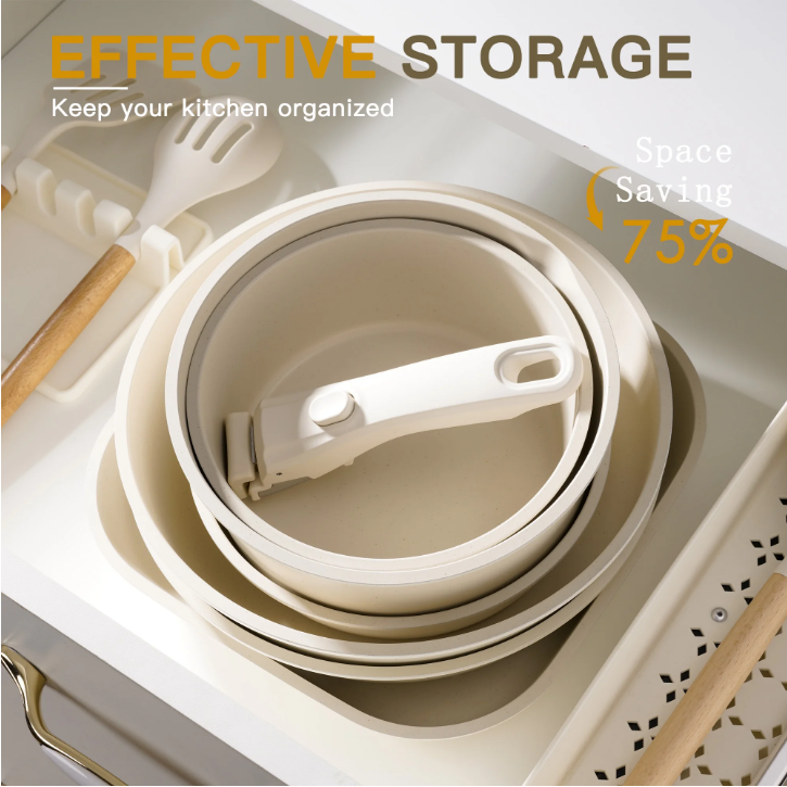 - Efficient Space-Saving: Stackable design and detachable handles maximize storage space, making it ideal for RVs, compact kitchens, and small living areas.